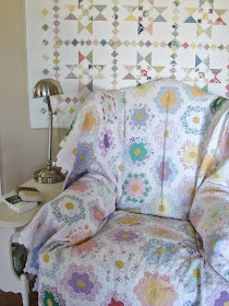 I also added this sweet quilt - that I made for display of the first Durham Anew line that I designed - to the 'sample quilts for sale' page. There is no pattern for it - but it would be ideal in a little girls room or as an accent in any 'shabby-chic' space!